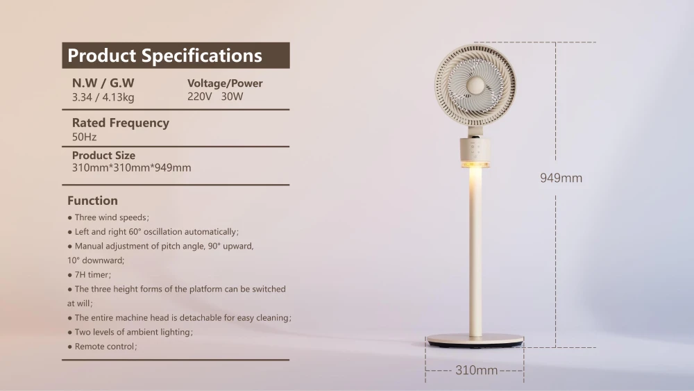 | Oscillation Angle | Left & right automatic oscillation |